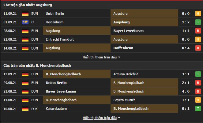 Phong độ gần đây Augsburg vs Monchengladbach: