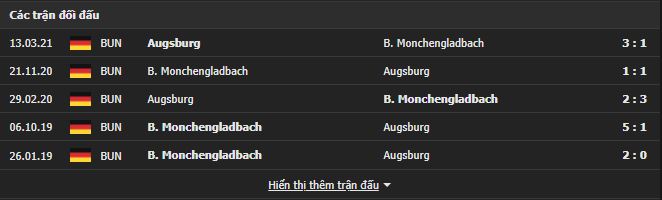 Thành tích đối đầu Augsburg vs Monchengladbach: