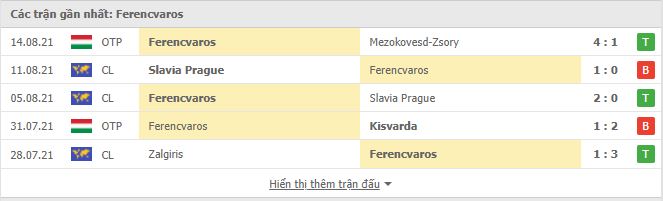 - Phong độ Ferencvarosi TC