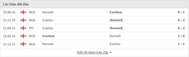 Thành tích đối đầu Everton vs Norwich