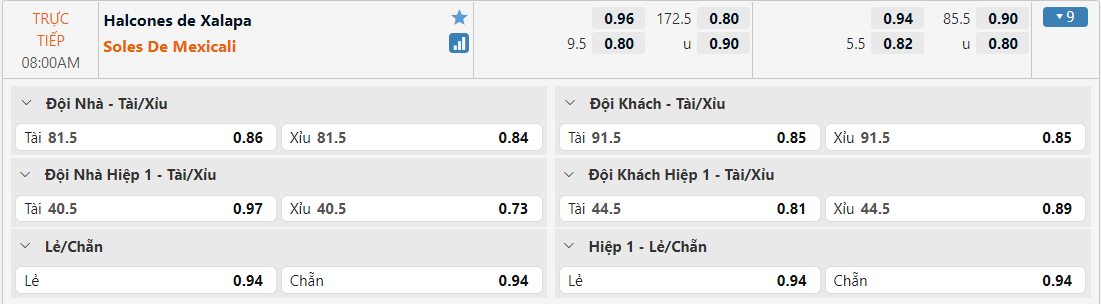 Bảng tỷ lệ kèo Halcones de Xalapa vs Soles de Mexicali