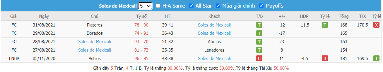 - Phong độ Soles de Mexicali