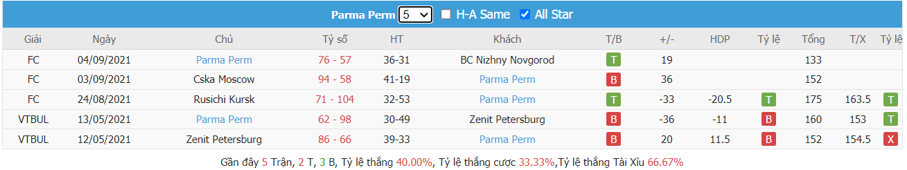 Thống kê cho thấy cả hai đội đều thể hiện được những sự quyết liệt qua các trận so tài trước đây của hai bên khi mà Parma Permsky Kray đã có tới 6 trên 9 lần đối đầu gần nhất với chính Hapoel Eilat đều đã ghi được trên 117 điểm mỗi trận. Trong khi đó Hapoel Eilat cũng không hề kém cạnh với 7 trên 9 lần đối đầu gần nhất với chính Parma Permsky Kray đều đã ghi được trên 113 điểm mỗi trận. Đồng thời đã có tới 6 trên 9 lần đối đầu gần nhất của hai đội đều đã khép lại với các kết quả chung cuộc nổ tài.