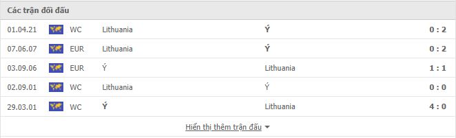 Thành tích đối đầu Italy vs Lithuania