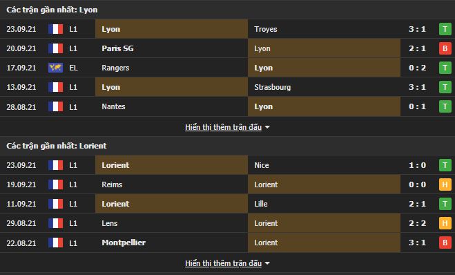 Phong độ gần đây Lyon vs Lorient: