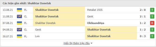- Phong độ Shakhtar Donetsk