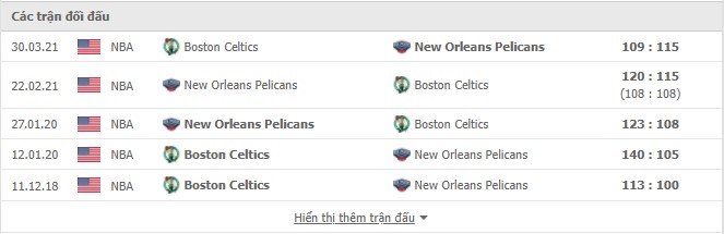 Lịch sử đối đầu Boston Celtics vs New Orleans Pelicans