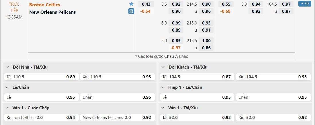 Bảng kèo Boston Celtics vs New Orleans Pelicans