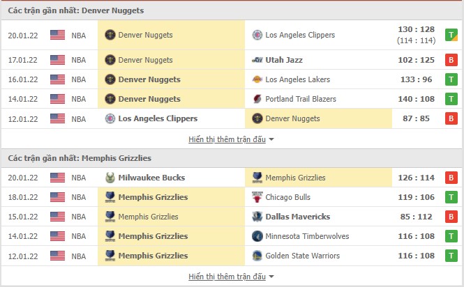 Phong độ gần đây Denver Nuggets vs Memphis Grizzlies