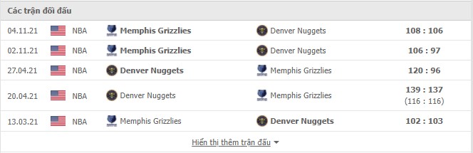 - Fulltime: Denver Nuggets 113 - 115 Memphis Grizzlies ( Tài )