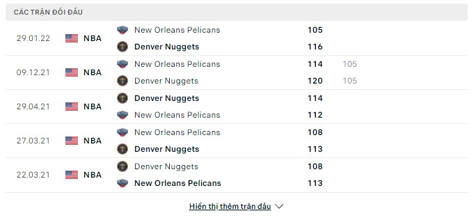 Lịch sử đối đầu Denver Nuggets vs New Orleans Pelicans
