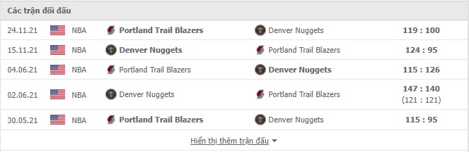 Phong độ gần đây Denver Nuggets vs Portland Trail Blazers