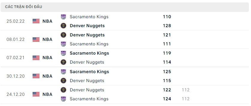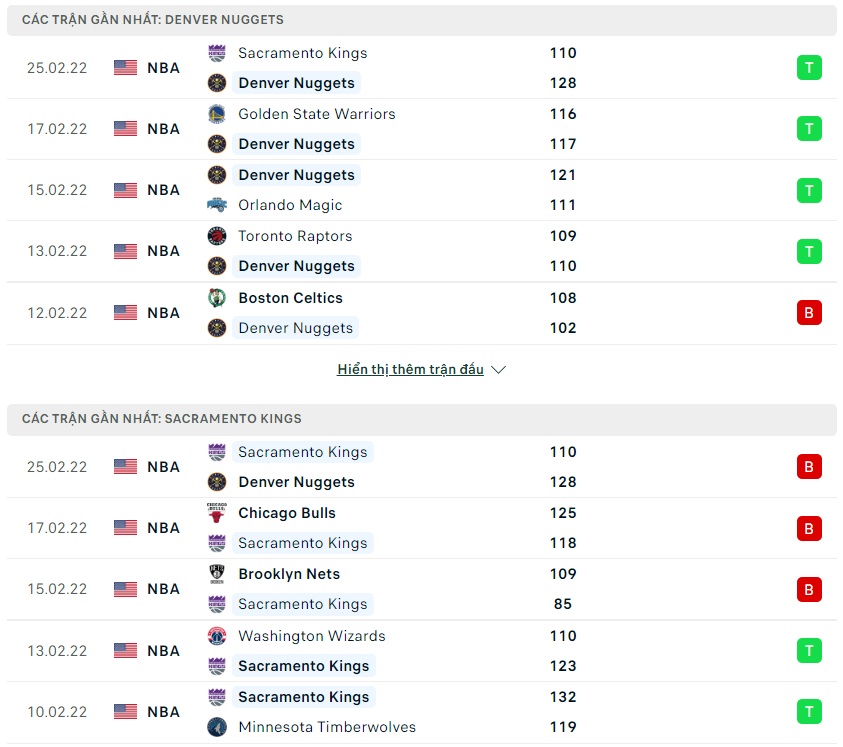 Phong độ gần đây Denver Nuggets vs Sacramento Kings