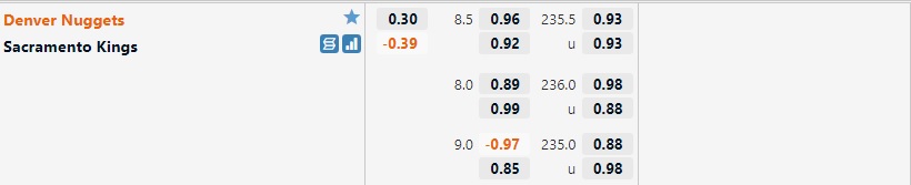 Bảng kèo Denver Nuggets vs Sacramento Kings