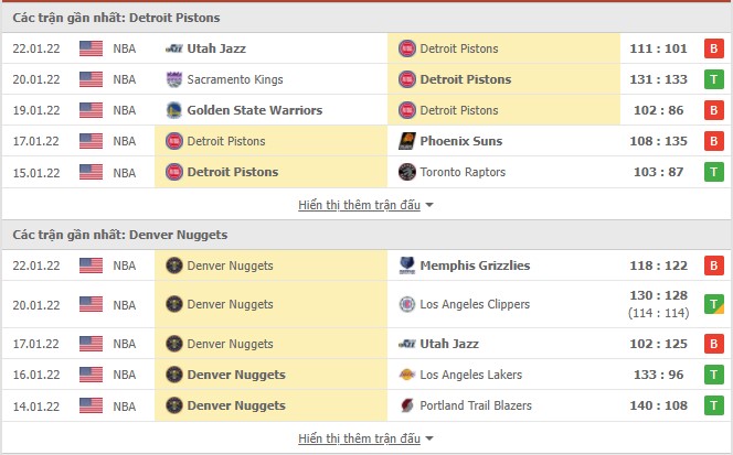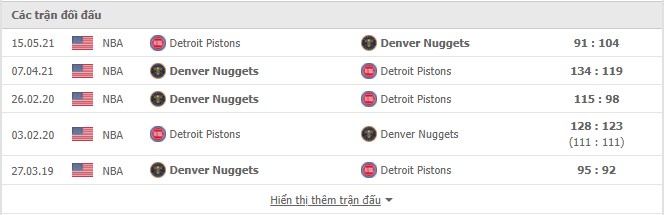 Phong độ gần đây Detroit Pistons vs Denver Nuggets