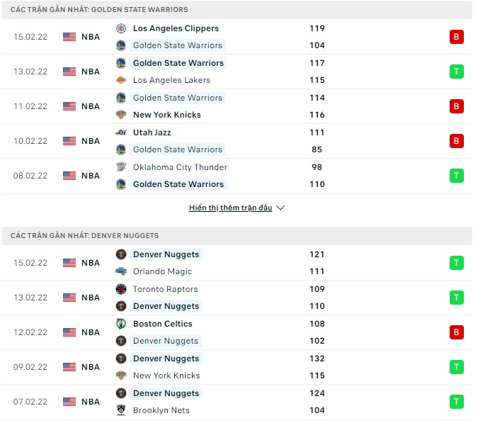 Golden State Warriors vs Denver Nuggets – 10h00 17/02/2022: Quyết tâm tới từ đội khách.