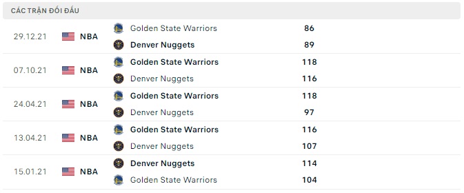 Lịch sử đối đầu Golden State Warriors vs Denver Nuggets