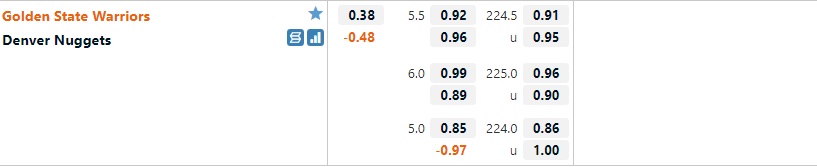 Bảng kèo Golden State Warriors vs Denver Nuggets