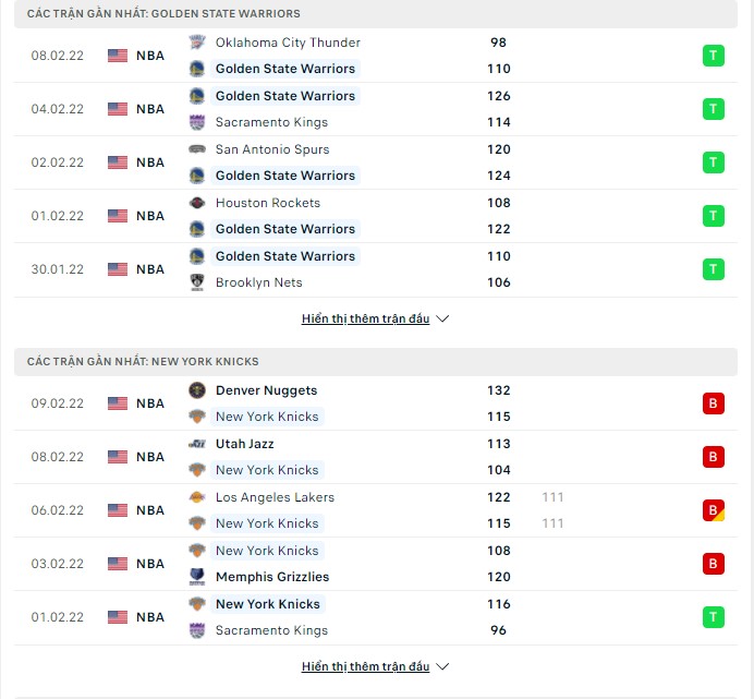 Golden State Warriors vs New York Knicks – 10h00 11/02/2022: Tiến tới chuỗi 10 chiến thắng liên tiếp.
