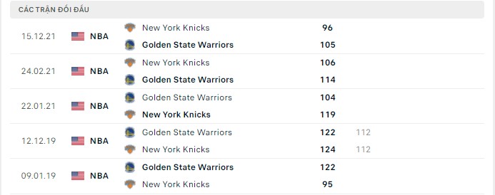 Lịch sử đối đầu Golden State Warriors vs New York Knicks