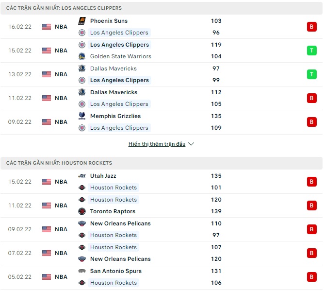 Phong độ gần đây Los Angeles Clippers vs Houston Rockets