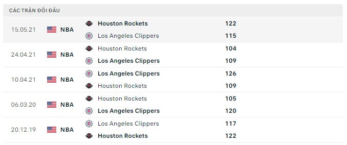 Lịch sử đối đầu Los Angeles Clippers vs Houston Rockets