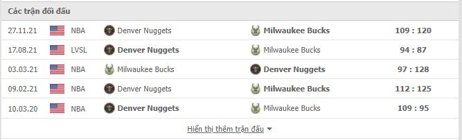 Lịch sử đối đầu Milwaukee Bucks vs Denver Nuggets
