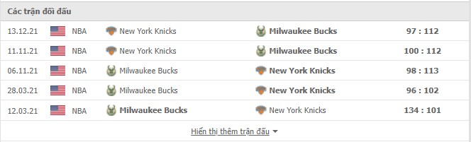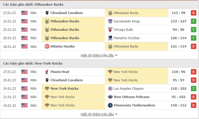 Phong độ gần đây Milwaukee Bucks vs New York Knicks