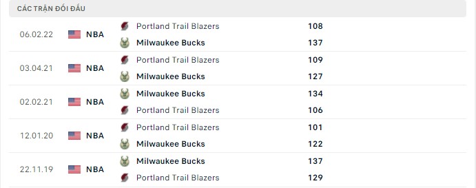 Lịch sử đối đầu Milwaukee Bucks vs Portland Trail Blazers