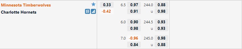 Bảng kèo Minnesota Timberwolves vs Charlotte Hornets