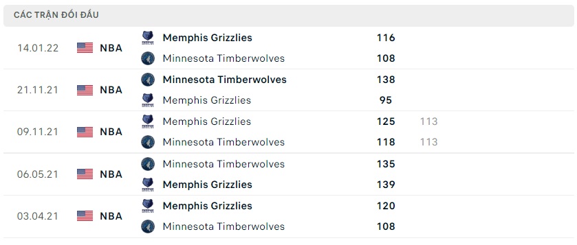 Lịch sử đối đầu Minnesota Timberwolves vs Memphis Grizzlies