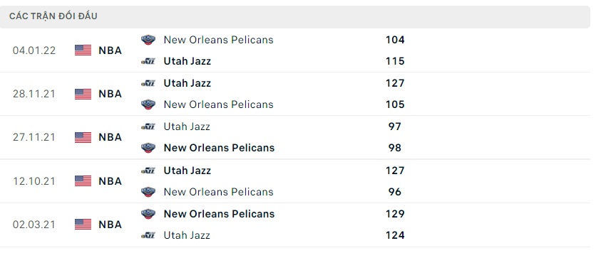 Lịch sử đối đầu New Orleans Pelicans vs Utah Jazz