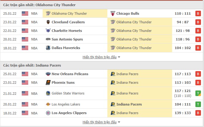 Oklahoma City Thunder vs Indiana Pacers – 08h00 29/01/2022: Chiến thắng để trở lại.