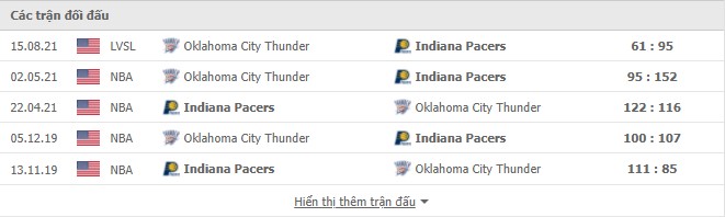 Lịch sử đối đầu Oklahoma City Thunder vs Indiana Pacers