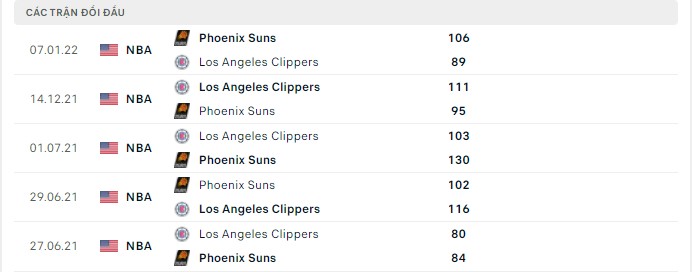 Lịch sử đối đầu Phoenix Suns vs Los Angeles Clippers