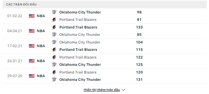 - Fulltime: Portland Trail Blazers 96 - 103 Oklahoma City Thunder ( Xỉu )