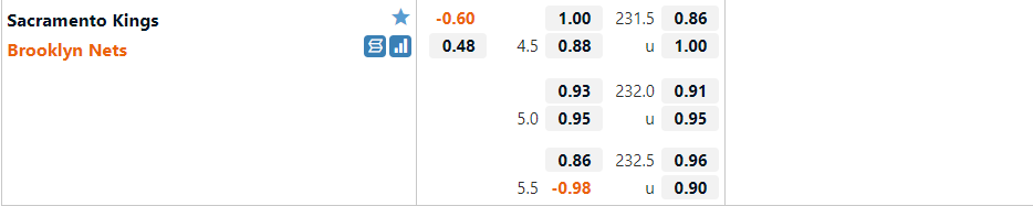 Bảng kèo Sacramento Kings vs Brooklyn Nets