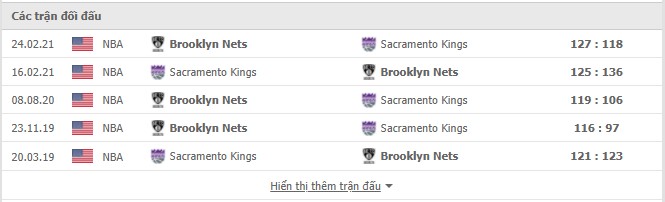 Trong lần chạm trán gần nhất trên sân khách trong mùa giải năm ngoái, Brooklyn Nets đã có được chiến thắng sau cùng với tỷ số 136-125 trong một thế trận mà cả 2 đã đôi công đầy mãn nhãn tới những phút cuối cùng. Durant cũng đã gặp phải chấn thương trong ngày thi đấu đó và không thể ra sân, dù vậy thì cặp đôi Irving và Harden vẫn đã cho thấy giá trị của mình. Kyrie kết thúc trận đấu với 40 điểm cùng 9 trên 11 quả 3 thành công, James thì có một cú Triple Double thần thánh với 29 điểm, 13 rebound và 14 kiến tạo. Với việc Harden đang bỏ ngỏ khả năng ra sân trong trận đấu tới, việc Kyrie phải tự tìm cách gánh đội nhà tiến tới chiến thắng cuối cùng sẽ là rất cao. Về phía Kings, cầu thủ ghi điểm tốt nhất bên phía họ thời điểm này là Fox có được 19 điểm trong ngày thi đấu đó và không cho thấy sự nổi bật. Chấn thương của anh trong quãng thời gian gần đây khiến Kings đang khó khăn lại càng gặp thêm những vấn đề. Khả năng ra sân bỏ ngỏ của Fox cùng Bagley khiến đội chủ nhà đứng trước trận thua thứ 8 liên tiếp. Nets tuy bị hao tổn lực lượng nhưng thành tích sân khách ấn tượng mùa này cùng tham vọng trở lại sẽ giúp Kyrie cùng các đồng đội có được chiến thắng sau cùng.