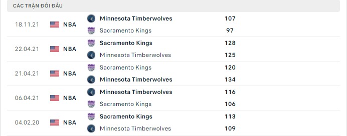 Lịch sử đối đầu Sacramento Kings vs Minnesota Timberwolves