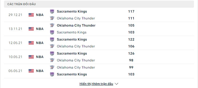- Fulltime: Sacramento Kings 117 - 115 Oklahoma City Thunder ( Tài )