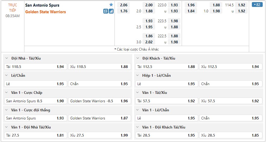 Bảng kèo San Antonio Spurs vs Golden State Warriors