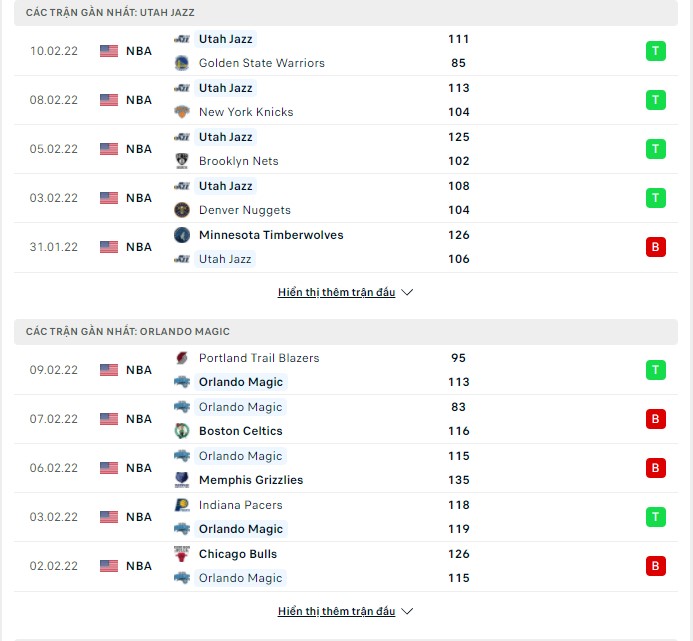Phong độ gần đây Utah Jazz vs Orlando Magic