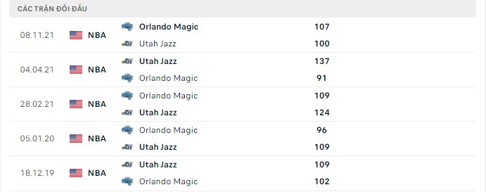 Lịch sử đối đầu Utah Jazz vs Orlando Magic