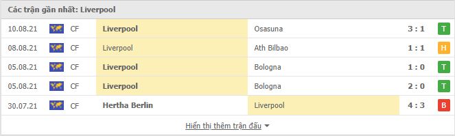 - Phong độ Liverpool