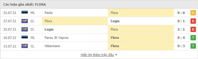 - Phong độ Flora Tallinn