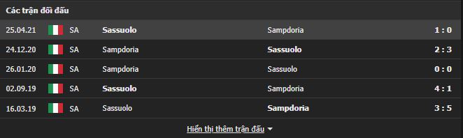 Thành tích đối đầu Sassuolo vs Sampdoria: