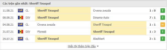 - Phong độ Sheriff Tiraspol