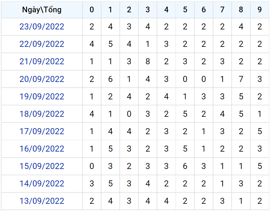 Thống kê loto XSMB theo tổng tính đến ngày 24/9/2022