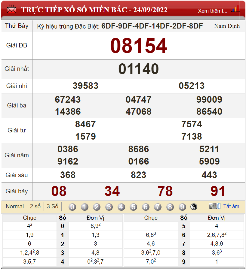 Kết quả cầu lô theo xổ số miền Bắc ngày 24/9/2022