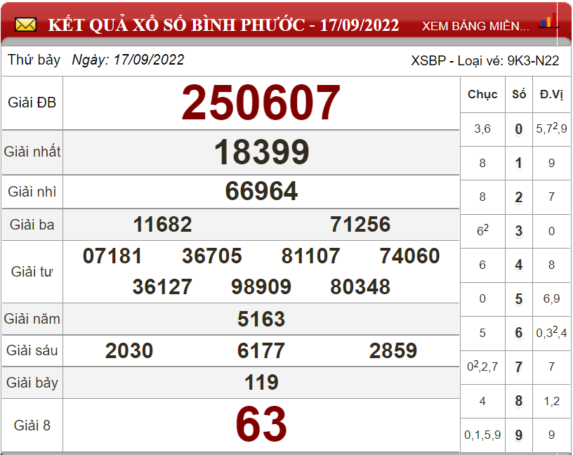 Kết quả lô đề theo xổ số Bình Phước ngày 17/9/2022